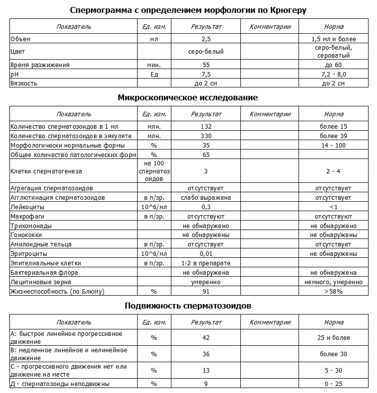 Обратите внимание, что существует несколько видов спермограммы – базовая, расширенная, с морфологией по Крюгеру. Вы должны определиться, какая из них требуется именно вам. Тогда недоразумений с оформлением справки не возникнет.